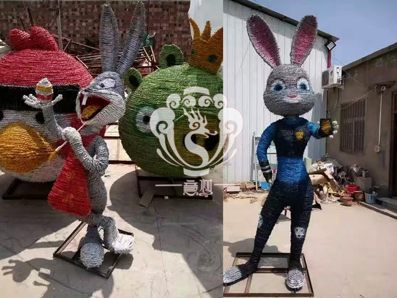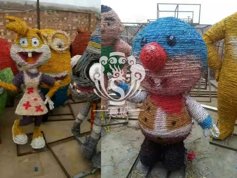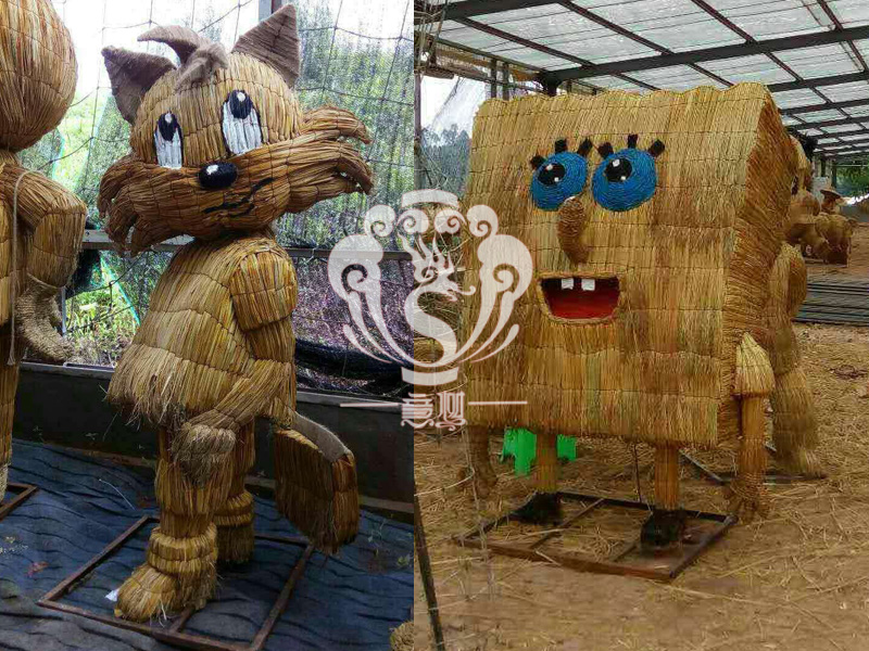 稻草人藝術(shù),不僅充分利用的稻草秸稈制作出各種有趣的形象,與此同時(shí)還能減少秸稈的焚燒,為我們的藍(lán)天白云,子孫后代做一份貢獻(xiàn)!現(xiàn)在的精致稻草人藝術(shù)通常是由專(zhuān)業(yè)美術(shù)老師的造型放樣,然后由焊工師傅焊接出立體造型造型,然后以稻草或者稻草繩為材料編捆制作而成。