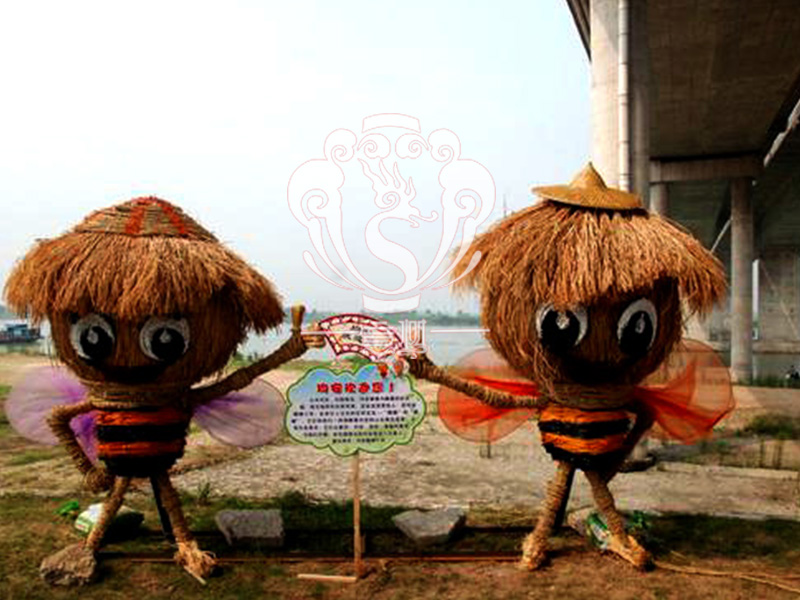 現(xiàn)在的精致稻草人藝術(shù)通常是由專業(yè)美術(shù)老師的造型放樣,然后由焊工師傅焊接出立體造型造型,然后以稻草或者稻草繩為材料編捆制作而成。